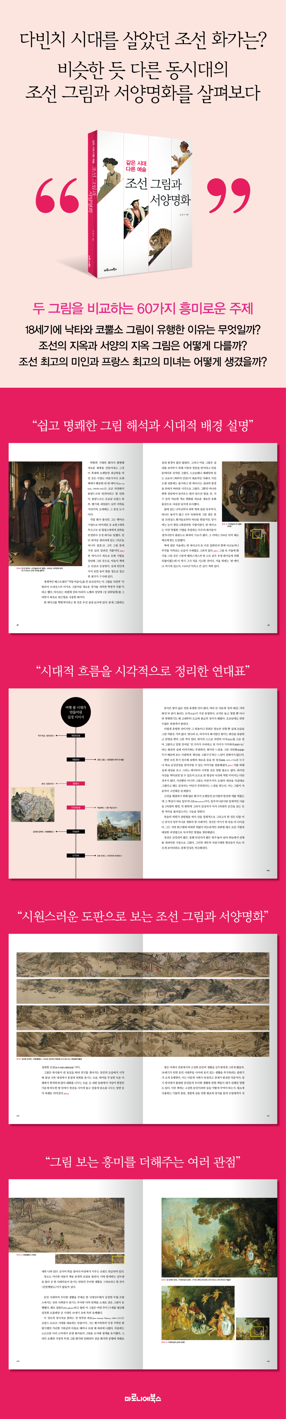±×¿Í ÇÔ²² ¡®µ¿¡¤¼¾ç ±×¸²ÀÇ ºñ±³¡¯¶ó´Â °üÁ¡¿¡¼ ÀÛǰÀ» »ìÆìº¸¸é¼ ¹ß°ßµÇ´Â ÀÇ¿ÜÀÇ ÁöÁ¡µéÀÌ Èï¹Ì¸¦ ºÒ·¯ÀÏÀ¸Å²´Ù. ¿¹¸¦ µé¾î Á¶¼± ºÒȳª Çà»ç±â·ÏÈ °°Àº ±×¸²µéÀ» ºñ½ÁÇÑ ½Ã±âÀÇ ¼¾ç ±×¸²°ú ºñ±³ÇßÀ» ¶§, ³»¿ëÀ̳ª ±â¹ýÀûÀÎ ¸é¿¡¼ ÀüÇô ¼Õ»öÀÌ ¾ø´Ù´Â »ç½ÇÀ» »õ»ï ±ú´Ý°Ô µÈ´Ù. ÀÌ ¿Ü¿¡ Á¶¼±ÀÇ Áö¿Á°ú ¼¾çÀÇ Áö¿Á ±×¸²Àº ¾î¶»°Ô ´Ù¸¥Áö, Á¶¼± ÃÖ°íÀÇ ¹ÌÀΰú ÇÁ¶û½º ÃÖ°íÀÇ ¹Ì³à´Â ¾î¶»°Ô »ý°å´ÂÁö, ´ë¿Õ´ëºñÀÇ È¯°©ÀÜÄ¡¿Í ºòÅ丮¾Æ ¿©¿ÕÀÇ ¸¸ÂùÀº ±× ȣȷοòÀÌ ¾î¶»°Ô ´Ù¸¥Áöµµ »ìÆìº¼ ¼ö ÀÖ´Ù. ÀÌ °°Àº »õ·Î¿î °üÁ¡Àº µ¶ÀÚµéÀÌ º¸´Ù dz¼ºÇÑ ¹Ì¼ú»ç¸¦ ¸¸³¯ ¼ö ÀÖ°Ô²û ÇØÁØ´Ù.