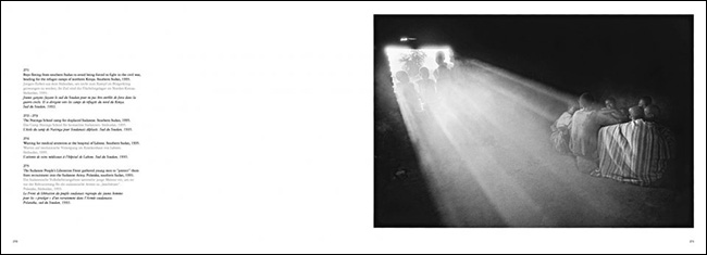 ¼¼¹Ù½ºÆ¼¾Ó »ì°¡µµ(Sebastião Salgado)´Â °¡Àå Á¸°æ¹Þ´Â Çö¿ª Æ÷ÅäÀú³Î¸®½ºÆ® Áß ÇÑ ¸íÀÌ´Ù. ±×ÀÇ ¸í¼ºÀº ¼ö½Ê ³â¿¡ °ÉÄ£ Çå½Å°ú, À¢¸¸ÇÑ »ç¶÷Àº °¥ ¾öµÎÁ¶Â÷ ³»Áö ¸øÇÏ´Â °÷¿¡¼­ °íÅë¹Þ´Â À̵éÀ» ´ã¾Æ³½ °­·ÄÇÑ Èæ¹é »çÁøÀ¸·Î ½×¾Æ¿Ã·ÁÁ³´Ù. »ì°¡µµ´Â ¼¼°è °¢Áö¸¦ µ¹¸ç »çÁøÀ» Âï¾úÁö¸¸, ±× Áß¿¡¼­µµ ¾ÆÇÁ¸®Ä« ÀÛǰÀÌ ¾ÐµµÀûÀ¸·Î ¸¹´Ù. ±×´Â ¾ÆÇÁ¸®Ä«¿¡¼­¸¸ 30³â¿¡ °ÉÃÄ 40Â÷·Ê°¡ ³Ñ´Â ¸£Æ÷¸£Å¸ÁÖ ÀÛ¾÷À» Çß´Ù. ¼ö´ÜÀÇ µùÄ«Á·, ³ª¹Ìºñ¾ÆÀÇ Èû¹ÙÁ·, ¾ÆÇÁ¸®Ä« È£¼ö Áö´ëÀÇ °í¸±¶ó¿Í È­»êµé, ´ë·ú Àü¿ª¿¡¼­ º¼ ¼ö ÀÖ´Â °­Á¦ ÀÌÁÖ ´çÇÑ »ç¶÷µé—»ì°¡µµ´Â ¾ÆÇÁ¸®Ä«¿¡¼­ »ê´Ù´Â °ÍÀÇ ¸ðµç ¸é¸éÀ» ¿ì¸®¿¡°Ô º¸¿©ÁØ´Ù. ±×´Â ÇÑ ¼ø°£ÀÇ Á¤¼ö¸¦ ¾î¶»°Ô Æ÷ÂøÇØ³»´ÂÁö¸¦ Á¤È®ÇÏ°Ô ¾Ë°í ÀÖÀ¸¸ç, ±×ÀÇ »çÁøµéÀº ÀüÀï, ºó°ï, Áúº´, ÀÚ¿¬ÀçÇØÀÇ ²ûÂïÇÑ °á°úµéÀ» ¿¹¼úÀûÀ¸·Î º¸¿©ÁØ´Ù. ÀÌ ³î¶ó¿î Ã¥Àº »ì°¡µµÀÇ »çÁøµéÀ» ¸ðµÎ ¼¼ ºÎºÐÀ¸·Î ³ª´©¾î ¼Ò°³ÇÑ´Ù—1ºÎ´Â ¾ÆÇÁ¸®Ä« ³²ºÎ(¸ðÀáºñÅ©, ¸»¶óÀ§, ¾Ó°ñ¶ó, Áü¹Ùºê¿þ, ³²¾ÆÇÁ¸®Ä«°øÈ­±¹, ³ª¹Ìºñ¾Æ), 2ºÎ´Â ´ëÈ£¼ö Áö¿ª(Äá°í ¸£¿Ï´Ù, ºÎ·éµð, ¿ì°£´Ù, źÀڴϾÆ, ÄɳÄ), ±×¸®°í 3ºÎ´Â »çÇÏ¶ó ³²ºÎ(ºÎ¸£Å°³ª ÆÄ¼Ò, ¸»¸®, ¼ö´Ü, ¼Ò¸»¸®¾Æ, Â÷µå, ¸ð¸®Å¸´Ï¾Æ, ¼¼³×°¥)¿¡ ÃÊÁ¡À» ¸ÂÃß°í ÀÖ´Ù. º»¹®À» ¸ÃÀº ¸ðÀáºñÅ©ÀÇ À¯¸í ¼Ò¼³°¡ Mia Couto´Â 21¼¼±âÀÇ ¾ÆÇÁ¸®Ä«°¡ °æÁ¦Àû, »çȸÀû, ȯ°æÀû À§±â´Â ¹°·Ð °ú°Å ½Ä¹ÎÁö ¿ª»ç¸¦ ¾î¶»°Ô ¹Ý¿µÇϰí ÀÖ´ÂÁö¸¦ º¸¿©ÁØ´Ù.