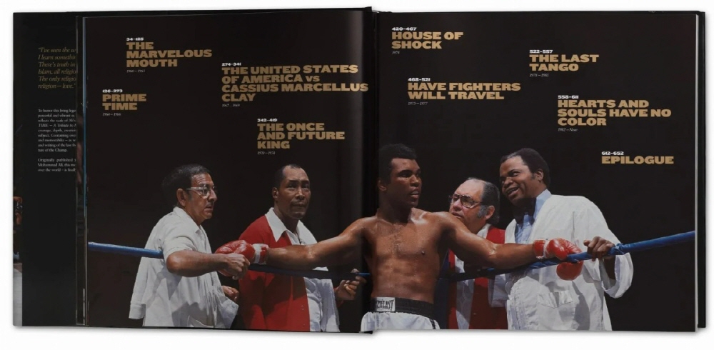TASCHENÀº ÀÌ »ì¾ÆÀÖ´Â Àü¼³¿¡°Ô Á¸°æÀ» Ç¥Çϱâ À§ÇØ ±×¸¦ °¡Àå °·ÂÇϰí Ȱ±âÂ÷°Ô Ç¥ÇöÇÑ ¼»ç Ã¥À» Á¦ÀÛÇß´Ù. ¾Ë¸®ÀÇ ¼ö¸¹Àº ¾÷Àû ±Ô¸ð¸¦ ¹Ý¿µÇÑ °æÀÌÀûÀÎ µµ¼: GREATEST OF ALL TIME- A TRIBUTE TO MUHAMMAD ALI´Â ÀÌ Æ¯º°ÇÑ ÁÖÁ¦¿¡ Èû, ¿ë±â, ±íÀÌ, âÁ¶¼º°ú ÈÖȲÂù¶õÇÑ ¿¡³ÊÁö¸¦ ´ãÀº Ã¥ÀÌ´Ù. 100¸íÀÌ ³Ñ´Â »çÁøÀÛ°¡¿Í ¾ÆÆ¼½ºÆ®·ÎºÎÅÍ ¾òÀº »çÁø, ¾ÆÆ®, ¼öÁýǰÀÇ ¼öõ ÀåÀÇ À̹ÌÁöµé°ú 2°³ÀÇ Á¢¾î ³ÖÀº ¿¬¼Ó ÆäÀÌÁö, Áö³ 50³â °£ÀÇ ±Û°ú ÈǸ¢ÇÑ ÀÎÅͺäµé»Ó¸¸ ¾Æ´Ï¶ó ¿øº» ¿¡¼¼À̵é·Î èÇǾðÀÇ ¸ð½ÀÀ» ´ãÀº ÀÌ ±â³äºñÀûÀÎ ÃâÆÇ¹°Àº ºÎ´ã¾ø´Â ¹«ÇÑÁ¤ÆÇ ¿¡µð¼ÇÀÌ´Ù.