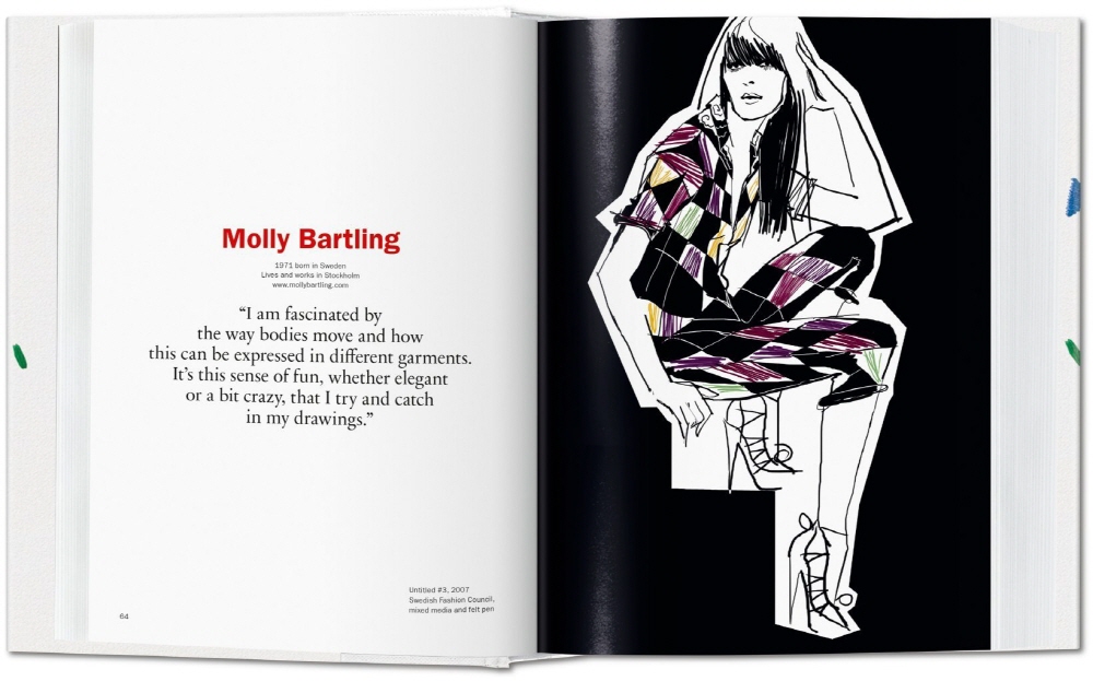 Each illustrator is profiled through sumptuous reproductions of their work and quotes describing their individual approaches. These are interspersed by commentary and praise from renowned experts and icons in the field of fashion, including Valentino, Maison Martin Margiela, Christian Dior, Louis Vuitton, and H&M.