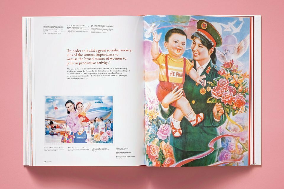 Chairman Mao, portrayed as a stoic superhero (aka the Great Teacher, the Great Leader, the Great Helmsman, the Supreme Commander), appeared in all kinds of situations (inspecting factories, smoking a cigarette with peasant workers, standing by the Yangzi River in a bathrobe, presiding over the bow of a ship, or floating over a sea of red flags), flanked by strong, healthy, ageless men and ¡°masculinized¡± women and children wearing baggy, sexless, drab clothing. The goal of each poster was to show the Chinese people what sort of behavior was considered morally correct and how great the future of Communist China would be if everyone followed the same path toward utopia by uniting together.