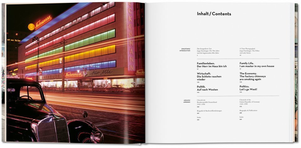 The photographs portray a country caught between the opposite poles of technological modernism and cultural restoration, between affluence and penury, between German Gemütlichkeit and the constant threat of the Cold War. They show the winners and losers of the ¡°economic miracle,¡± people from all social classes, at home, at work, in their very limited free time and as consumers. But they also show a country that looks, in retrospect, like a film from the middle of the last century.