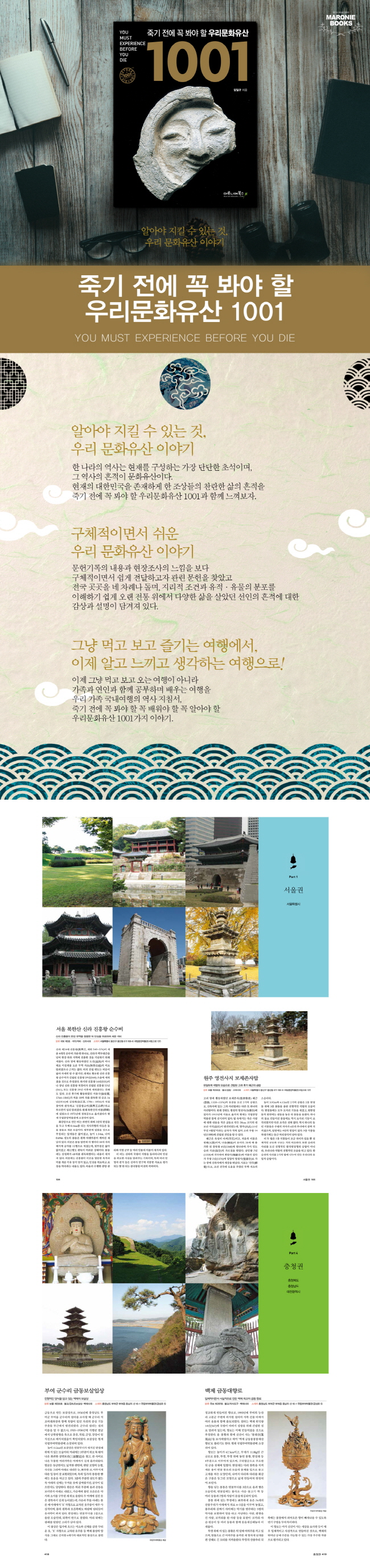 ¡ºÁ×±â Àü¿¡ ²À ºÁ¾ß ÇÒ ¿ì¸® ¹®ÈÀ¯»ê 1001¡»Àº ÇöÁ¸ÇÏ´Â ¿ì¸® ¹®ÈÀ¯»êÀ» ¸ðµÎ Æ÷°ýÇÑ ¡®¿ì¸® ¹®ÈÀ¯»ê ´ë¹é°ú»çÀü¡¯ÀÌ´Ù. °æº¹±Ã, ¼®±¼¾Ï, ÆÈ¸¸´ëÀå°æ µî ³Î¸® ¾Ë·ÁÁø À¯»êÀº ¹°·Ð, ¾ÈÁß±Ù Àǻ簡 ÀÌÅä È÷·ÎºÎ¹Ì¸¦ »ç»ìÇÑ µÚ °¨¿Á¿¡¼ ¾´ À¯¹¬, Á¶¼±À» È·ÁÇÏ°Ô ²ÉÇÇ¿î Á¤Á¶ÀÇ ±×¸², ÅëÀÏ½Å¶ó ¶§ ¹äÀ» Áö¾î ½Â·Á 3õ¿© ¸íÀÌ °ø¾çÇß´Ù´Â ¹ýÁÖ»ç ö¼Ü, Áß±¹¿¡ ÀÖ´Â ±¤°³Åä´ë¿Õ¸ªºñ¿Í °í±¸·ÁÀÇ Ã¹ µµ¼ºÀÎ ¿À³à»ê¼º µî ¿ì¸® Á¶»óÀÇ ¹ßÀÚÃ븦 °í½º¶õÈ÷ º¸¿©ÁÖ´Â À¯Àû°ú À¯¹°À» ÃѸÁ¶óÇß´Ù.