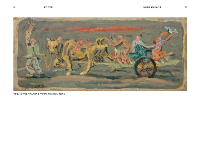 - 1951³â 10¿ù 19ÀÏ Áß°ø±ºÀÇ ÂüÀü¿¡ µû¶ó ÀüÀïÀº ¿¼¼·Î µ¹¾Æ¼¹°í ÀÌ¿¡ µû¶ó ¸¹Àº ±¹¹ÎµéÀº ³²À¸·Î ÇdzÀ» ³»·Á°£´Ù. ±×·¸°Ô Èê·¯ µé¾î°£ ÇdzÁö ºÎ»ê¿¡¼ÀÇ »îÀº ÂüȤÇϱ⠱×Áö¾ø¾ú°í Çѱ¹Çö´ë¹Ì¼ú»ç¿¡ Å« Á·ÀûÀ» ³²±ä ¹Ú¼ö±Ù, ÀÌÁß¼·, Àå¿íÁø°ú °°Àº Ȱ¡µéµµ ¿¹¿Ü°¡ ¾Æ´Ï¾ú´Ù. À̵éÀº ¹Ì±ººÎ´ë ¾Õ¿¡¼ ÃÊ»óÀ» ±×·ÁÁְųª Çãµå·¿ÀÏÀ» ÇÏ¸ç »ýÀ» À̾°¬À¸¸ç ´ëÇѰæÁúµµ±âÁÖ½Äȸ»ç¿¡¼ Àå½ÄÁ¢½Ã¿¡ ±×¸²À» ±×¸®´Â ÀÏÀ» Çß´Ù. ±×·¯³ª ÀÌ·± ¿ÍÁß¿¡¼µµ ºÎ»êÀÇ ±¤º¹µ¿ ´Ù¹æ°Å¸®¿¡¼´Â Å©°í ÀÛÀº Àü½Ãȸ°¡ ²÷ÀÌÁö ¾Ê¾ÒÀ¸¸ç ÀÌ »ç½ÇµéÀÌ ¹Ù·Î ¿ì¸® Ȱ¡µéÀÇ ²öÁú±ä »ýÀÇ ÀÇÁö¿Í ¿¹¼ú¿¡ ´ëÇÑ Àú·ÂÀ» ¸ñ°ÝÇÒ ¼ö ÀÖ´Â »ç·ÊÀÌ´Ù.