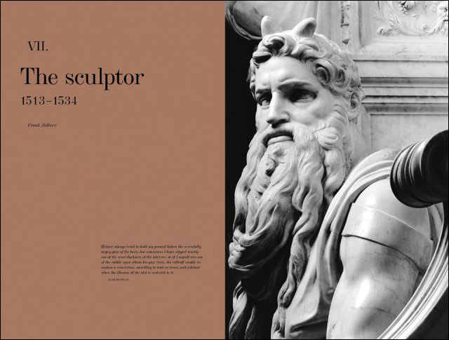 30´ë¿¡ µµ´ÞÇϱâ ÀÌÀü¿¡ ÀÌ¹Ì ¹ÌÄ̶õÁ©·ÎMichelangelo Buonarroti (1475-1564)´Â ¿¹¼úÀÇ Àü ¿ª»ç ¼Ó¿¡¼µµ °¡Àå ¶Ù¾î³ª´Ù°í ºÒ¸®´Â ÀÛǰµéÀÎ David¿Í Pièta¸¦ ¸¸µé¾ú´Ù. µ¿·áÀÎ ·¹¿À³ª¸£µµ ´Ùºóġó·³, ¹ÌÄ̶õÁ©·Î´Â ¸£³×»ó½ºÀÇ ºû³ª´Â ½ºÅ¸ÀÎ µ¿½Ã¿¡ ¿Ïº®ÇÑ ±â±³ÀÇ ÃµÀç¿´´Ù. Á¶°¢°¡ÀÌÀÚ È°¡, Á¦µµ°ø, °ÇÃà°¡·Î¼ ±×ÀÇ ¾÷ÀûÀº Ưº°ÇÏ´Ù. -¹ÌÄ̶õÁ©·Î ÀÌÀüÀÇ È¤Àº ±× ÀÌÈÄÀÇ ¾î¶² ¿¹¼ú°¡µµ ±×ó·³ ´Ù¾çÇÏ°í ³ÐÀº ¹üÀ§¿¡ À̸£´Â ÀÛǰÀ» ¸¸µé¾î³»Áö´Â ¸øÇß´Ù. ¿ÀÁ÷ ¼Ò¼öÀÇ È°¡¿Í Á¶°¢°¡µé¸¸ÀÌ ±×¿Í ºñ±³ÇÒ¸¸ÇÑ »çȸÀû ÁöÀ§¸¦ ¾ò¾úÀ¸¸ç À¯»çÇÑ ¿¹¼úÀû ÀÚÀ¯¸¦ Áñ±æ ¼ö ÀÖ¾ú´Ù. ÀÌ »ç½ÇÀº ½Ã½ºÆ¼³ª ¿¹¹è´çÀÇ ÇÁ·¹½ºÄÚ È »Ó ¾Æ´Ï¶ó, ±×ÀÇ ±â³äºñÀû Á¶°¢µé°ú Çü½Ä¿¡ ±¸¾Ö¹ÞÁö ¾Ê´Â °ÇÃà µðÀÚÀεé, ±×ÀÇ ½Ã´ëÀÇ Ç¥ÇöÀ» ³Ñ¾î¼´Â ÀÛǰµéÀÌ Áõ¸íÇϰí ÀÖ´Ù. À̰ÍÀº ¹ÌÄ̶õÁ©·Î°¡ ±×ÀÇ µ¿½Ã´ëÀε鿡°Ô ½ÅÀ¸·Î ¼þ¾Ó¹Þ¾ÒÀ» Á¤µµÀÇ Àç´ÉÀÎ µ¿½Ã¿¡, ±×ÀÇ »ý¾ÖÀÇ ÁÖÁ¦¿´´Ù.
