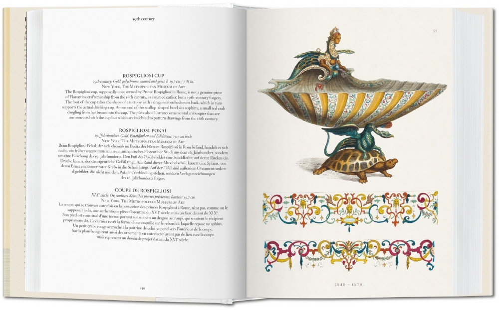 The book¡¯s lead editor was well placed to select masterpieces from the Middle Ages through to the Renaissance from both public and private collections. Jakob Heinrich von Hefner-Alteneck (1811–1903), was head of the Royal Cabinet of Prints and Drawings in Munich and later director of the Bavarian National Museum. The signatures on the plates of Kunstwerke und Geräthschaften show that he was also the work¡¯s main draftsman.