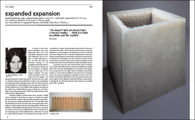 ¼ö·ÏµÈ ÀÛ°¡µé: Carl Andre, Stephen Antonakos, Jo Baer, Larry Bell, Ronald Bladen, Walter De Maria, Dan Flavin, Robert Grosvenor, Eva Hesse, Donald Judd, Gary Kuehn, Sol LeWitt, Robert Mangold, John McCracken, Robert Morris, Robert Ryman, Fred Sandback, Richard Serra, Tony Smith, Robert Smithson, Anne Truitt