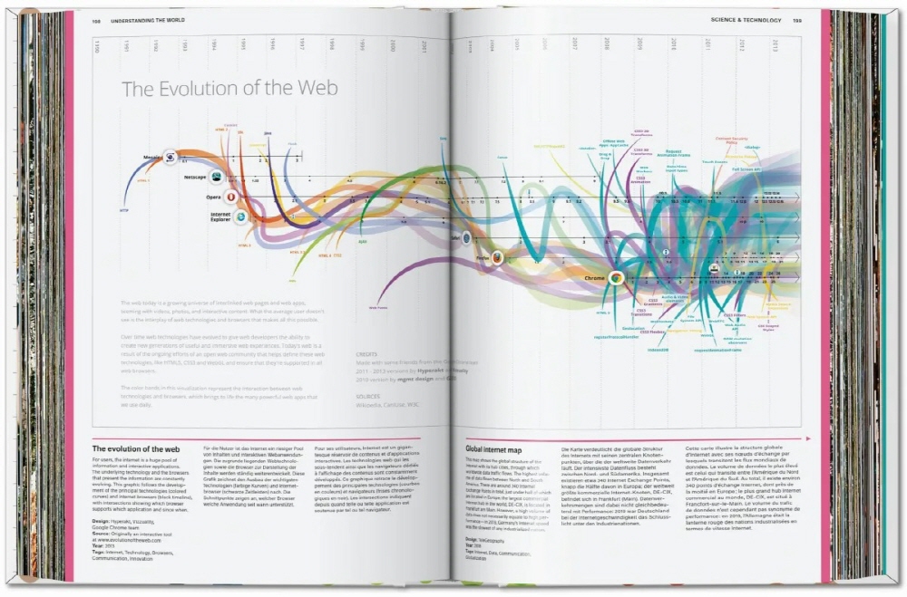 Nigel Holmes introduces the book with an exclusive infographic of his own, while Sandra Rendgen provides an illustrated historical essay to explore how we have studied and interpreted our world over the centuries. With graphics drawn from such sources as Fortune, National Geographic, and The Guardian, this is not only a showcase of outstanding data design, but also a fascinating digest of where and how we live.