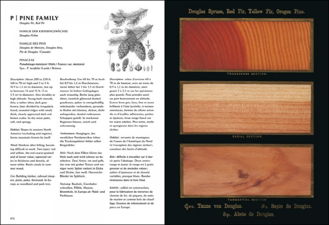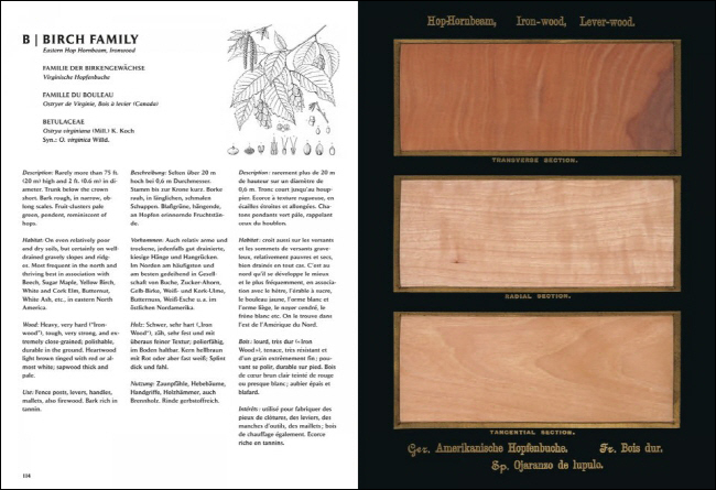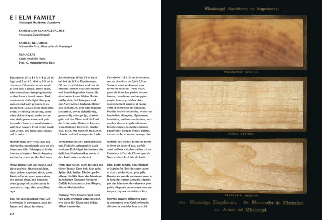 Taschen¿¡¼ ¹ß°£ÇÏ´Â ¿ìµå ºÏ(Wood Book)Àº ¿øº»¿¡ ³²¾Æ ÀÖ´Â °ßº»À» ¸ðµÎ ¼¶¼¼ÇÏ°Ô º¹Á¦ÇÏ¿© Á¦ÀÛÇÑ °ÍÀ¸·Î쎠, º¹Á¦¸¦ À§ÇØ ³ª¹« ÄÆ¿¡ ¹ÌÄ¡´Â ¼Õ»óÀÌ ÃÖ¼ÒȵǾî ÀÖ´Â ÈǸ¢ÇÑ »óÅ·Π³²¾Æ ÀÖ´Â Áö±ØÈ÷ Èñ±ÍÇÑ ¿øº»À» »ç¿ëÇÏ¿´´Ù. ÇöÀç ¾ËÆÄºª ¼ø¼¿¡ µû¶ó ¹è¿µÇ¾î ÀÖ´Â ¸ðµç ³ª¹«´Â ¹æ»çÇü°ú ¼öÆò, ¼öÁ÷ÀÇ 3°³ Ⱦ´Ü Àý´Ü¸éÀ» º¸¿©ÁÖ°Ô µÇ¾î ÀÖÀ¸¸ç, ÀÌ´Â ¼ö¸¹Àº ³ª¹«µéÀÇ Ç³ºÎÇÑ »ö°ú Áú°¨, ¾¾¾ÑÀÇ Æ¯Â¡ µîÀ» º¸¿©ÁÙ ¼ö ÀÖµµ·Ï µÇ¾î ÀÖ´Ù. ¶ÇÇÑ º» Ưº°ÆÇ¿¡´Â ´ëºÎºÐÀÇ ³ª¹µÀÙ°ú °ú½ÇÀ» Âû½º ½ºÇÁ¶ó±× »ç¸£°ÕÆ®(Charles Sprague Sargent)°¡ Á¦ÀÛÇÑ ¼®ÆÇÈ¿Í ³ª¹«ÀÇ ¿ø»êÁö¿Í ¹°¸®Àû Ư¡ µî¿¡ °üÇÑ ¼³¸íÀÌ Æ÷ÇԵǾî ÀÖ´Ù.