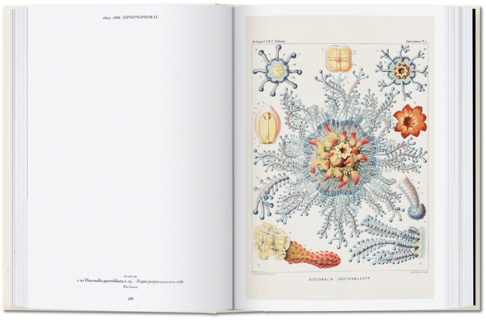 At the heart of Haeckel¡¯s colossal legacy was the motivation not only to discover but also to explain. To do this, he created hundreds of detailed drawings, watercolors, and sketches of his findings which he published in successive volumes, including several marine organism collections and the majestic Kunstformen der Natur (Art Forms in Nature), which could serve as the cornerstone of Haeckel¡¯s entire life project. Like a meticulous visual encyclopedia of living things, Haeckel¡¯s work was as remarkable for its graphic precision and meticulous shading as for its understanding of organic evolution. From bats to the box jellyfish, lizards to lichen, and spider legs to sea anemones, Haeckel emphasized the essential symmetries and order of nature, and found biological beauty in even the most unlikely of creatures.