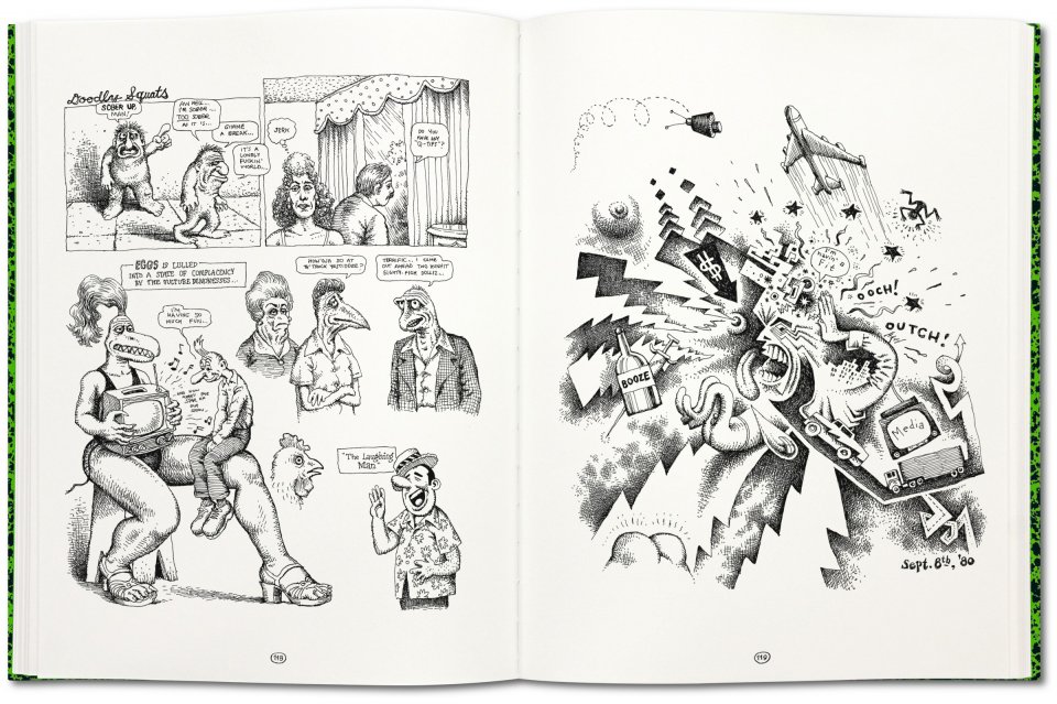 The artist: ·Î¹öÆ® Å©·³(Robert Crumb)Àº 1943³â Çʶóµ¨ÇǾƿ¡¼ ž Çü Âû½ºÀÇ ¿µÇâÀ¸·Î ¾î¸° ½ÃÀýºÎÅÍ ¸¸È¸¦ ±×¸®±â ½ÃÀÛÇß´Ù. 60³â´ë Áß¹Ý È¯°¢Á¦ LSD º¹¿ëÀÌ ±×¿¡°Ô ¸í¼ºÀ» °¡Á®´Ù ÁØ ¾ð´õ±×¶ó¿îµå ½ºÅ¸ÀÏ·Î Á¢¾îµé°Ô ÇßÀ½À» ½º½º·Î ÀÎÁ¤ÇÑ´Ù. ÀÌ ¶§ÀÇ ¸ð½ÀÀº "Zap", "Snatch", "Big Ass", "Weirdo", "Hup" µîÀÇ ¸¸È¿¡ Àß µå·¯³ª ÀÖ´Ù. ½º¹« Æí °¡·®ÀÇ Ã¥À» Ãâ°£Çߴµ¥, TASCHENÀÇ "Sex Obsessions(2007)"¸¦ Æ÷ÇÔÇØ ½º¹« ±Ç °¡·®ÀÇ Ã¥À» Ãâ°£Çß°í, ÀÚÀüÀû ¿µÈ "Crumb (1994)"¿¡ ÀÚ½ÅÀÇ À̾߱⸦ ´ã±âµµ Çß´Ù. ÇöÀç ¾Æ³» Aline Kominsky-Crumb°ú ÇÔ²² ÇÁ¶û½º¿¡¼ °ÅÁÖÇÑ´Ù.
