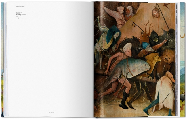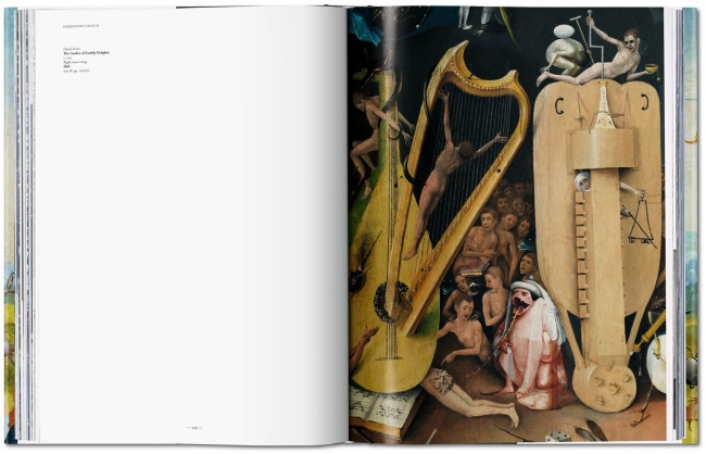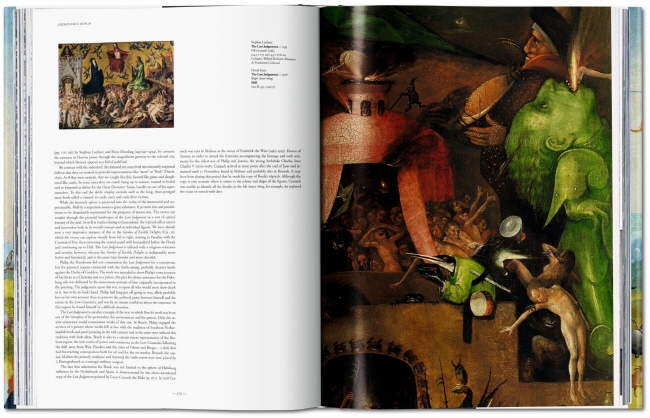TASCHENÀÇ À̹ø ÃÊ´ëÇü »çÀÌÁî ´ÜÇົÀº º¸½ºÀÇ ÀüÀÛÀ» ¾Æ¿ì¸£´Â Ã¥À¸·Î, Ãæ°ÝÀûÀÎ ±¸¼º ¹üÁÖ¿Í °¡Àå ±â¹¦ÇÏ°í º¹ÀâÇÑ µðÅ×ÀϱîÁö È®ÀÎÇÒ ¼ö ÀÖ´Ù. Àü¸é¿¡ ±×´ë·Î ³ÖÀº dzºÎÇÑ ±×¸²°ú ÃÖÈÄÀÇ ½ÉÆÇ(The Last Judgement)ÀÇ Á¢ÀÌ½Ä µµÆÇ±îÁö ¸¸³ªº¼ ¼ö ÀÖ´Ù. ¹Ì¼ú»çÇÐÀÚÀÌÀÚ º¸½º Àü¹®°¡ÀÎ ½ºÅ×ÆÇ ÇǼÅÀÇ ¾È³»¸¦ ÅëÇØ, µ¶ÀÚµéÀº °¢ Àå¸é ¼Ó º¯Á¾°ú ¾ß¼ö¿¡¼ µµ»ìµÈ ½ÅüºÎÅÍ °ü¿ë¾î¿Í ¼Ó´ãÀ» À̹ÌÁöÈ ½ÃŲ ±×¸²±îÁö ¼Ò¼ÒÇÑ ¿ä¼ÒµéÀ» º¼ ¼ö ÀÖ´Ù. º¸½ºÀÇ °¡Àå À¯¸íÇÑ ÀÛǰÀÎ ÀØÀ» ¼ö ¾ø´Â ³î¶ó¿î ¼¼ Æø Â¥¸®ÀÇ Äè¶ôÀÇ Á¤¿ø(The Garden of Earthly Delights)À» °ü½É ÀÖ°Ô ºÁ¾ßÇÒ °ÍÀÌ´Ù.