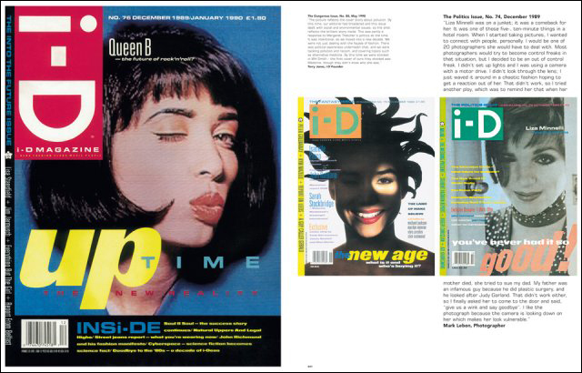 I-D ¸Å°ÅÁøÀÇ ¼³¸³ÀÚÀÌÀÚ ±¤°í Á¦ÀÛ °¨µ¶ÀÎ Terry Jones´Â 1970³â´ë¿¡ º£´ÏƼ Æä¾î(Vanity Fair)¿Í ¿µ±¹ º¸±×(Vogue)ÀÇ ¾ÆÆ® µð·ºÅÍ·Î ÆÐ¼Ç °æ·ÂÀ» ½×±â ½ÃÀÛÇß´Ù. 1977³â ÀÌ·¡·Î ±×ÀÇ Instant Design studio¿¡¼´Â TASCHENÀÇ Smile i-D, Fashion Now 1, Fashion Now 2 ±×¸®°í Soul i-D.¸¦ Æ÷ÇÔÇÑ Ä«Å»·Î±×, Ä·ÆäÀÎ, Àü½Ã¿Í Ã¥À» Á¦ÀÛÇß´Ù.