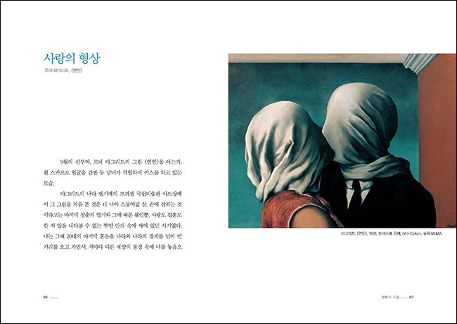 ¸£³× ¸¶±×¸®Æ®´Â 20¼¼±â ÃÊ ´Ù´ÙÀÌÁò°ú ÃÊÇö½ÇÁÖÀÇ ¹°°áÀÇ ÇÙ½ÉÀûÀΠȰ¡. ±×°¡ ±×¸° ¼ö¸¹Àº ½Åºñ·Î¿î ±×¸²µéÀº Á¤ÀÛ ¡®¾Æ¹«°Íµµ ÀǹÌÇÏÁö ¾Ê´Â´Ù¡¯´Â ´Ù´ÙÀÌÁòÀÇ ¸ðÅ並 ¸ÚÁö°Ô ´ëº¯ÇÑ´Ù. ¿¬ÀÎÀÇ ¾ó±¼À» ÈÖ°¨Àº Èò º¸Àڱ⵵, Çã°ø¿¡ ¶á »ç°úµµ, ÆÄ¶õ Çϴÿ¡ Èò ±¸¸§, µÚµ¹¾Æ¼± ½Å»çÀÇ µÞ¸ð½Àµµ, ±×¸®½º ¿©½ÅÀÇ ¾ó±¼¿¡ È帣´Â ÇÇ´Â ¡®°¡½ÃÀûÀÎ À̹ÌÁö¡¯ÀÏ »ÓÀÌ´Ù. Ȱ¡´Â [¿¬ÀÎ]À̶ó, [±â¾ï]À̶ó, [Çâ¼ö]¶ó À̸§ ºÙ¿©µµ, Á¤ÀÛ Áß¿äÇÑ °ÍÀº º¸´Â »ç¶÷, ´À³¢´Â »ç¶÷ÀÇ °ÍÀÌ´Ù. (91ÂÊ)