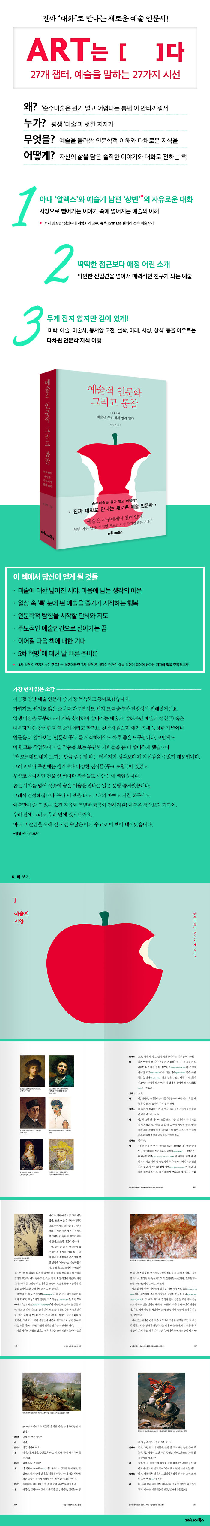 Ã¥ÀÇ ÁÖµÈ ³»¿ëÀº ¼¼ °³ÀÇ ´Ü¾î·Î ¿ä¾àµÈ´Ù. ¡®¿¹¼ú¡¯, ¡®Àι®¡¯, ±×¸®°í ¡®ÅëÂû¡¯! ù°, ¡®¿¹¼ú¡¯, ¿¹¼ú°¡ÀÎ ³ª ÀÚ½ÅÀ¸·ÎºÎÅÍ ÀÜÀÜÇÏ°Ô À̾߱⸦ Ç®¾î³ª°£´Ù. ½ÇÁ¦·Î ¹ú¾îÁ³´ø ´Ù¾çÇÑ ÀÏÈ, ±×¸®°í ¹®ÇÐÀûÀ¸·Î À籸¼ºÇÑ ´ëȸ¦ ¼¼ºÎ ºÐ¾ßº°·Î ¹¾ú´Ù. ÀÌ´Â ¿¹¼úÀûÀÎ ¸¶À½À» ޱ¸Çϱâ À§ÇÔÀÌ´Ù. µÑ°, ¡®Àι®¡¯, ¹Ì¼úÀ» ÅëÇØ ÀÚ¿¬½º·´°Ô Àι®ÇÐÀ» ³íÇÑ´Ù. ÀÛǰÀÇ °¨»ó, ±âÈ£ÀÇ ÇØµ¶, ºñÆòÀû ±Û¾²±â, ±×¸®°í ¿¹¼úÀÇ ºñÀüÀ» °íÂûÇÑ´Ù. ÀÌ´Â ¿¹¼úÀû Àι®Á¤½ÅÀ» ÇÔ¾çÇϱâ À§ÇÔÀÌ´Ù. ¼Â°, ¡®ÅëÂû¡¯, ´Ù¾çÇÑ ´ã·ÐÀ» Àü°³Çϸç âÀÇÀûÀÌ°í ºñÆòÀûÀÎ »ç°íÀÇ °úÁ¤°ú ±¸Á¶¸¦ µå·¯³½´Ù. ÀÌ´Â ¼¼»ó¿¡ ´ëÇÑ ÅëÂûÀ» À½¹ÌÇϱâ À§Çؼ´Ù. °á±¹ ÀÌ Ã¥ÀÇ ¸ñÇ¥´Â ÁøÇÑ ¿©¿îÀ» ³²±â´Â °Å´Ù. µ¶ÀÚµéÀÌ Ã¥À» ÅëÇØ ¡®ÀÇ¹Ì ÀÖ°Ô »ì°í ½Í´Ù¡¯´Â ¸¶À½À» ǰ°Ô µÈ´Ù¸é Âü ±â»Ú°Ú´Ù.