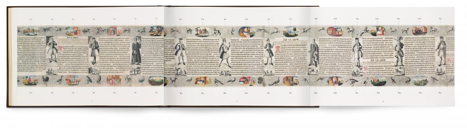 ¡Ú Clothbound and gilt-edged commentary volume by Falk Wiesemann contains an introductory essay, the biblical text of the Book of Esther in four languages and a fold-out sheet with an overview of all the illustrations