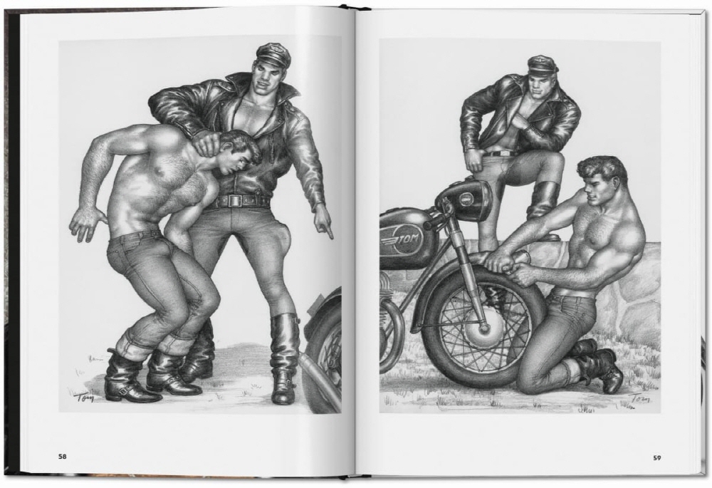 Tom¡¯s bikers first appeared as two ¡°Motorcycle Boys¡± in Physique Pictorial, Winter 1958. Another made the cover of the April 1960 issue. Bikers dominated his PP content from then on, as a nod to its American readership as much as his growing obsession. When he sought an ongoing character, a personal avatar, in 1968, he created Kake as the ultimate biker leatherman, and elaborated on his riding adventures – of every kind - through 26-panel stories. Tom adopted Kake¡¯s gear as his own, presenting in black leather jacket, white t-shirt, jeans, and high boots to the end of his life.