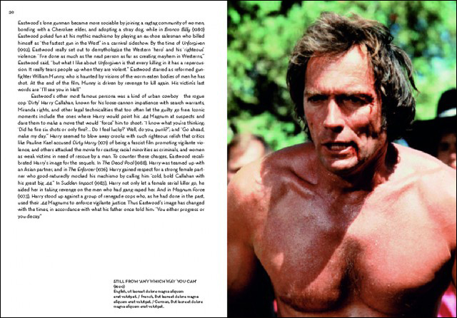44ÆíÀÇ ¿µÈ­¿¡ Ã⿬Çß°í, 27ÆíÀÇ ¿µÈ­¸¦ Á¦ÀÛÇÑ Å¬¸°Æ® À̽ºÅ©¿ìµå´Â »ì¾Æ ÀÖ´Â Àü¼³ÀÌ´Ù. ÀÌ Ã¥¿¡¼­´Â ¹«¹ýÀÚ 3ºÎÀÛ°ú Ȳ¾ßÀÇ ½ºÆ®·»Àú, ÆäÀÏ ¶óÀÌ´õ, ¿ë¼­¹ÞÁö ¸øÇÑ ÀÚ¿Í °°Àº ¼­ºÎ±Ø¿¡¼­ ±×°¡ ¿¬±âÇß´ø ½Åºñ½º·¯¿î ûºÎ »ìÀÎÀÚ¿¡¼­ºÎÅÍ ´õÆ¼ÇØ¸®¿Í °ÇƲ·¿, ¿¬¼â»ìÀÎ, ½Â¸®ÀÇ ÀüÀï, »ç¼±¿¡¼­¿Í °°Àº ¿µÈ­¿¡¼­ ±×°¡ »ì¾Ò´ø ¹®Á¦°¡ ¸¹Àº ¸¶ÃÊ ÁÖÀΰø°ú »ç¾ÇÇÑ °æÂû¿¡ À̸£±â±îÁö¸¦ »ìÆìº¸¸ç, ±×°¡ °¡Áø ½ºÅ¸¼ºÀÇ º¯È­¸¦ »ìÆìº¸°í ÀÖ´Ù. »ì¾Æ°¡¸é¼­, À̽ºÆ®¿ìµå´Â ÄÚ¹Ìµð±Ø (´õƼ ÆÄÀÌÅÍ, Every Which Way But Loose)°ú ¸ðÇè ¿µÈ­ (Ãß¾ÇÇÑ »ç³É²ÛWhite Hunter, Black Heart), ·Î¸Çƽ ¿µÈ­ (¸Þµð½¼ Ä«¿îƼÀÇ ´Ù¸®The Bridges of Madison County)¿¡ Ãâ¿¬ÇØ ÆÒµéÀ» ³î¶ó°Ô Çϱ⵵ ÇÏ¿´´Ù. ÀÌ¿Í ÇÔ²² Ŭ¸°Æ® À̽ºÆ®¿ìµå¿¡ °üÇÑ ¾î¶°ÇÑ Ã¥µµ ±×°¡ °¨µ¶ÇÑ ¹öµå(Bird), ¹Ì½ºÆ½ ¸®¹ö(Mystic River), ¹Ð¸®¾ð´Þ·¯ º£À̺ñ(Million Dollar Baby), ¾Æ¹öÁöÀÇ ±ê¹ß(Flags of Our Fathers) µî°ú °°Àº ¿µÈ­¸¦ »ìÆìº¸Áö ¾Ê°í¼­´Â ¿ÏÀüÇÏ´Ù ÇÒ ¼ö ¾ø´Ù. .