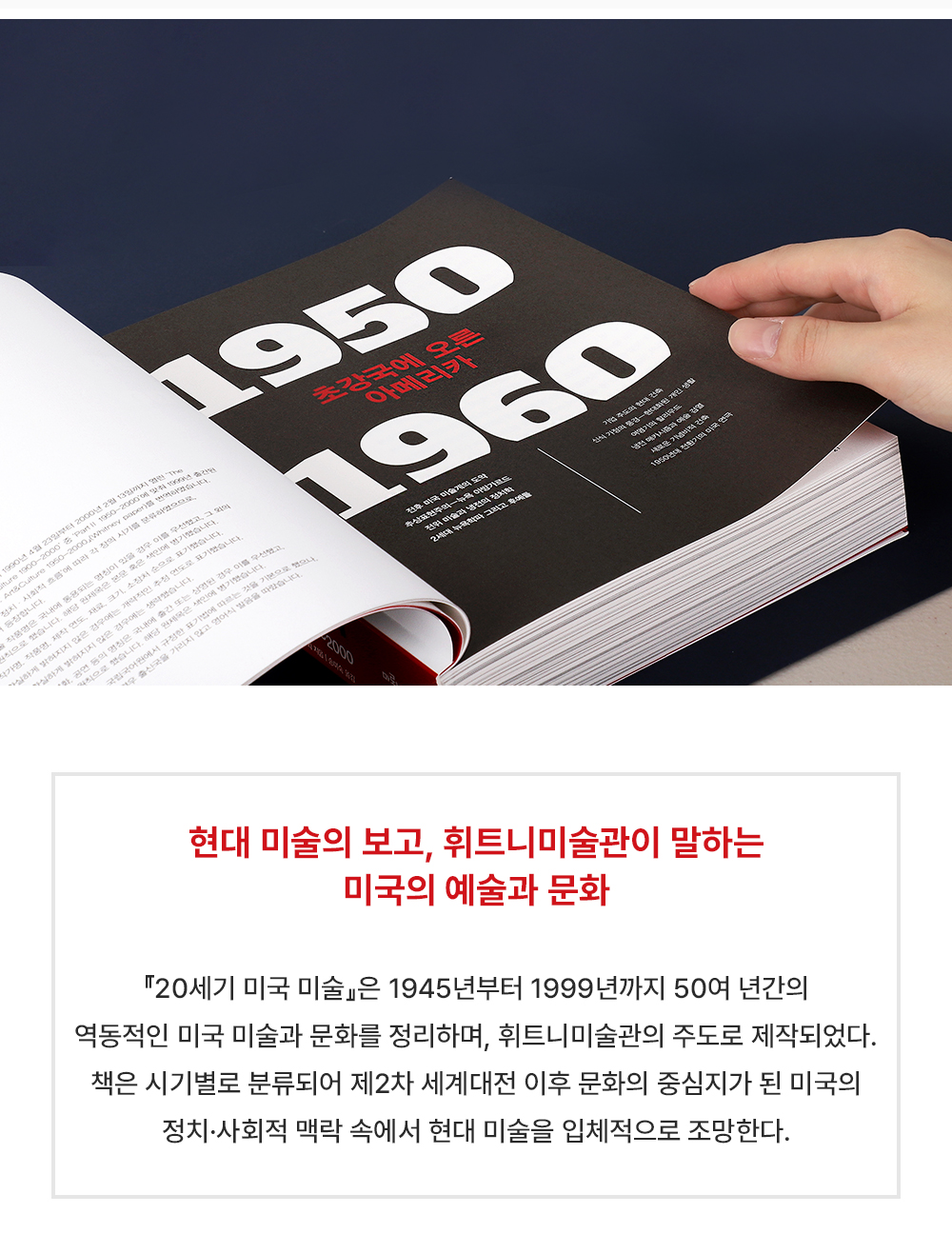 ¡º20¼¼±â ¹Ì±¹ ¹Ì¼ú: Çö´ë ¿¹¼ú°ú ¹®È­ 1950~2000¡»Àº 2000³â ¹Ð·¹´Ï¾öÀ» ¸ÂÀÌÇØ ÈÖÆ®´Ï¹Ì¼ú°üÀÌ ±âȹÇÑ Æ¯º°Àü½Ã()¸¦ À§ÇØ Á¦À۵Ǿú´Ù. 21¼¼±â¸¦ ¸ñÀü¿¡ µÐ ½ÃÁ¡¿¡¼­ 1950³â, Á¤È®ÇϰԴ 1945³âºÎÅÍ 1999³â±îÁö 50¿© ³â°£ÀÇ ¿ªµ¿ÀûÀÎ ¹Ì±¹ ¹Ì¼ú°ú ¹®È­¸¦ Á¤¸®Çϰڴٴ ¸ñÇ¥·Î ÈÖÆ®´Ï¹Ì¼ú°üÀÌ ÁÖµµÇÑ ÀÛ¾÷ÀÇ °á°ú¹°ÀÌ´Ù.