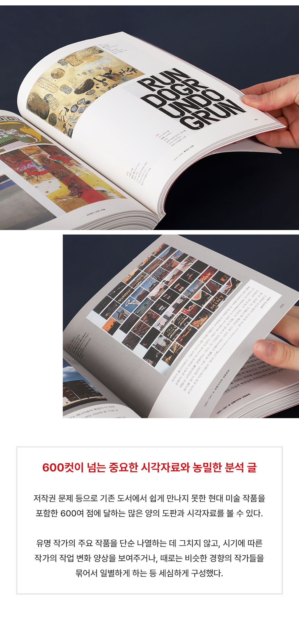 600¿© Á¡¿¡ ´ÞÇÏ´Â ¸¹Àº ¾çÀÇ µµÆÇ°ú ½Ã°¢ÀڷḦ º¼ ¼ö ÀÖ´Ù´Â °Í, ƯÈ÷ ÀúÀÛ±Ç ¹®Á¦ µîÀ¸·Î ±âÁ¸ µµ¼­¿¡¼­ ½±°Ô ¸¸³ªÁö ¸øÇÑ Çö´ë ¹Ì¼ú ÀÛǰµéÀ» ÇѲ¨¹ø¿¡ Á¢ÇÒ ¼ö ÀÖ´Ù´Â »ç½Çµµ ÀÌ Ã¥ÀÇ Áß¿äÇÑ ¸Å·ÂÀÌ´Ù. À¯¸í ÀÛ°¡ÀÇ ÁÖ¿ä ÀÛǰÀ» ´Ü¼ø ³ª¿­ÇÏ´Â µ¥ ±×Ä¡Áö ¾Ê°í, ½Ã±â¿¡ µû¸¥ ÀÛ°¡ÀÇ ÀÛ¾÷ º¯È­ ¾ç»óÀ» º¸¿©Áְųª, ¶§·Î´Â ºñ½ÁÇÑ °æÇâÀÇ ÀÛ°¡µéÀ» ¹­¾î¼­ ÀϺ°ÇÏ°Ô ÇÏ´Â µî ¼¼½ÉÇÏ°Ô ±¸¼ºÇß´Ù. ¶ÇÇÑ, Àü¹® ÇÊÁøÀÌ ¹Ì¼ú ÀÌ¿ÜÀÇ ´Ù¾çÇÑ ºÐ¾ß¿¡¼­ ½Ã´ëÀû ¸Æ¶ôÀ» ¤¾î³½ 47ÆíÀÇ ¿¡¼¼À̵µ µ¶Àڵ鿡°Ô Áñ°Å¿î ¼±¹°ÀÌ µÉ °ÍÀÌ´Ù.