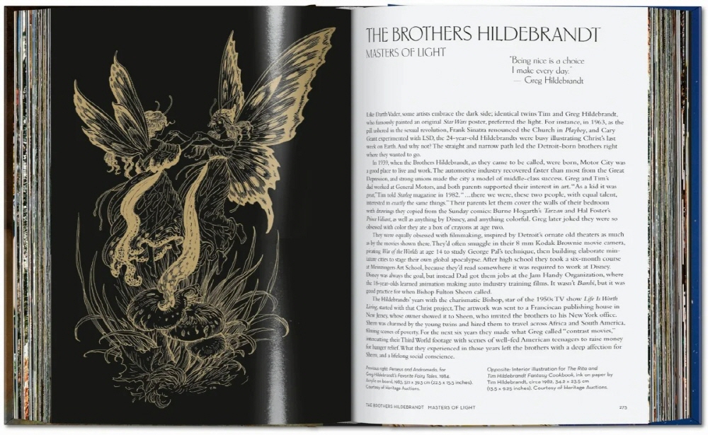 Fantasy art, that colorful blend of myth, muscle and sexy maidens, took off in 1923 with the launch of Weird Tales magazine, was reinvigorated in the 1960s with The Lord of the Rings, Conan the Barbarian paperbacks with Frank Frazetta covers, and the late ¡¯60s emergence of fantasy psychedelia. It went big in the ¡¯70s with the role-playing game Dungeons & Dragons, the brilliant French magazine Métal Hurlant, and the first Star Wars film. The number of active artists peaked in that decade, but a new generation of fans discovered the genre through fantasy trading card games in the ¡¯90s, leading to a massive interest in the art form today. Frank Frazetta¡¯s oil paintings—when they infrequently come to market—have sold for more than $ 5 million in recent years. Fans line up at Comic-Cons to meet Boris Vallejo, Rodney Matthews, Greg Hildebrandt, Michael Whelan, and Philippe Druillet, and memorialize dead icons HR Giger, Jeffrey Catherine Jones, and Frazetta. Imagine how eagerly they¡¯ll welcome TASCHEN¡¯s History of Fantasy Art, including all the artists listed above and more.