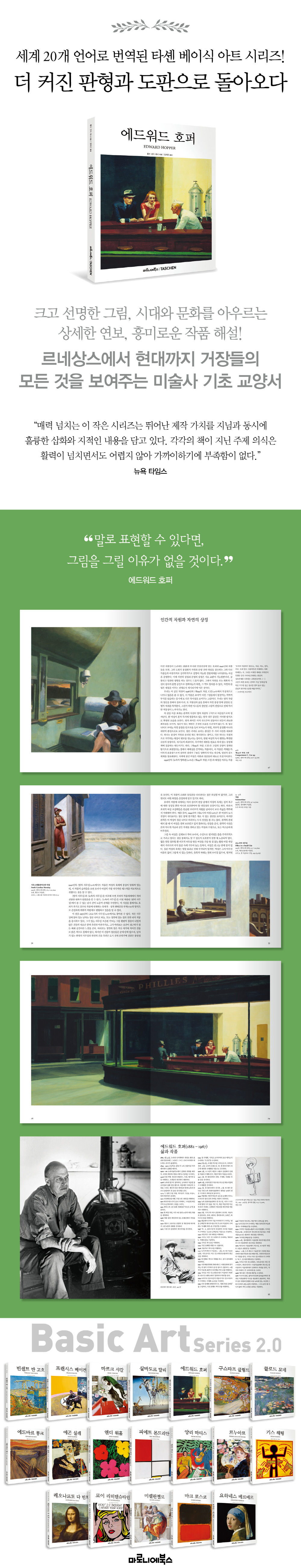 °íµ¶ÇÑ Çö´ëÀÎÀÇ ÀÚÈ­»ó ¿¡µå¿öµå È£ÆÛ(1882-1967)°¡ ´õ ÀÏÂï ¼º°øÇß´õ¶ó¸é, ¾Æ¸¶ ¹Ì±¹ÀÇ ¼º°ø ½ÅÈ­°¡ µÆÀ»Áöµµ ¸ð¸¥´Ù. ±×´Â 40¼¼ÀÇ ³ªÀÌ¿¡ ±×¸²À» ÇÑ ÀåÀÌ¶óµµ ´õ ÆÈ±â À§ÇØ ºÐÅõÇÏ´ø ¿¹¼ú°¡¿´´Ù. 80¼¼°¡ µÇ¾úÀ» ¹«·Æ¿¡ ºñ·Î¼Ò ÀâÁö Ç¥Áö¸¦ Àå½ÄÇÒ ¼ö ÀÖ¾ú´Ù. ±×ÀÇ Á×À½ ÀÌÈÄ ¹Ý¼¼±â°¡ Áö³­ ¿À´Ã³¯, È£ÆÛ´Â ±â¹¦ÇÏ°íµµ ÀØÇôÁöÁö ¾Ê´Â, ºÐÀ§±â¿Í Àå¼Ò¿¡ ´ëÇÑ ÀüÇô ´Ù¸¥ °¨°¢À» º¸¿©ÁÖ¸ç Çö´ëÀû Ç¥ÇöÀÇ ´ë°¡·Î Æò°¡¹Þ°í ÀÖ´Ù. È£ÆÛÀÇ ¸¹Àº ÀÛǰµéÀº ¸ð´ø µµ½Ã °æÇèÀ» º¹¿øÇØ ³Â´Ù. ĵ¹ö½º°¡ Çϳª¾¿ ¿Ï¼ºµÉ ¶§¸¶´Ù ±× À§¿¡ Ç¥ÇöÇÑ ½Ä´ç, Ä«Æä, »óÁ¡, °¡·Îµî, ÁÖÀ¯¼Ò, ±âÂ÷¿ª, È£ÅÚ ¹æ µîÀÌ ¹Ù·Î ±×°ÍÀÌ´Ù. Àå¸é¸¶´Ù ¼±¸íÇÑ »öä°¡ µå·¯³ª°í ¿¬±ØÀÇ Á¶¸í °°Àº ºÐÀ§±â, ±×¸®°í °ÅÄ£ À±°ûÀ¸·Î ¹¦»çµÈ Àι°µéÀÌ Æ¯Â¡À¸·Î ³ªÅ¸³ª¸ç ±×µéÀº ÁÖº¯¿¡ µîÀåÇÑ ¿Ü°èÀÎ °°ÀÌ ³¸¼± ´À³¦ÀÌ´Ù. ±×ÀÇ ÀÛǰ ·¹ÆÛÅ丮¸¦ »ìÆìº¸¸é Àü¹Ý¿¡ °ÉÃÄ ¼¶¶àÇÑ °íµ¶ÇÔ, ¼Ò¿Ü°¨, ¿Ü·Î¿ò, ½É¸®Àû ±äÀå°¨ÀÌ ¹¯¾î³­´Ù. ±×·¯¸é¼­µµ ½Ã°ñÀ̳ª ÇØ¾È°¡ dz°æÀ» ¹¦»çÇÑ ÀÛǰ¿¡´Â Æí¾ÈÇÏ°í ³«°üÀûÀÎ ºÐÀ§±â°¡ ³ªÅ¸³­´Ù. ÀÌ Ã¥Àº È£ÆÛÀÇ ÀüÀÛ¿¡ °ÉÃÄ ¹Ì±¹ ¹Ì¼ú»çÀÇ ¸Æ¶ô¿¡¼­»Ó ¾Æ´Ï¶ó ¹Ì±¹ Á¤½ÅÀÇ Á¤¼ö¸¦ º¸¿©ÁØ ÇÙ½É ÀÛǰµéÀ» ¼Ò°³ÇÑ´Ù.