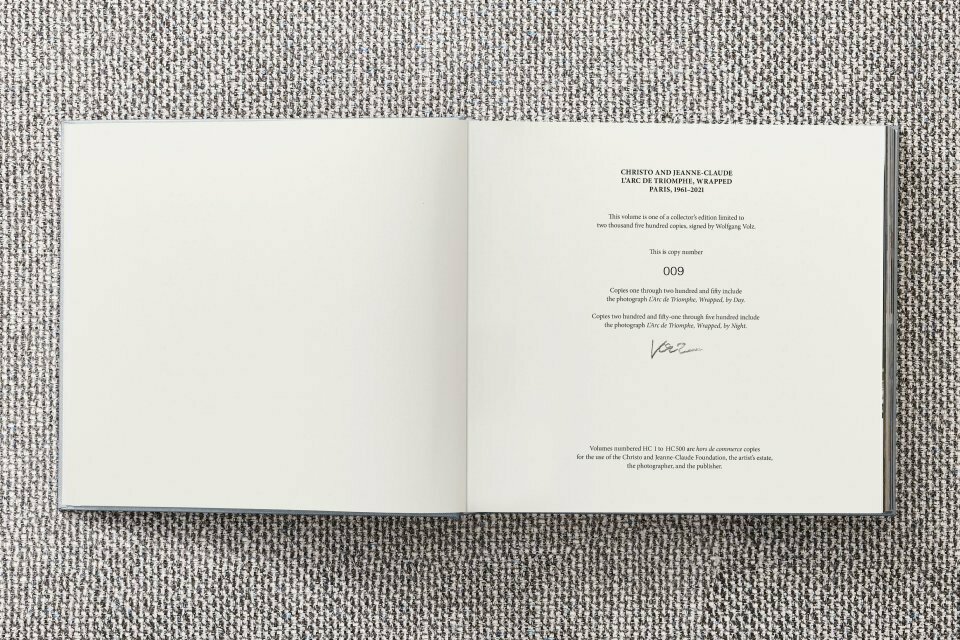 This Art Edition is limited to 250 signed and numbered copies. Each copy contains the print L¡¯Arc de Triomphe, Wrapped, by NIght, 2021, 40 x 60 cm (15.7 x 23.6 in.), numbered and signed by project photographer Wolfgang Volz and housed in a specially made portfolio.