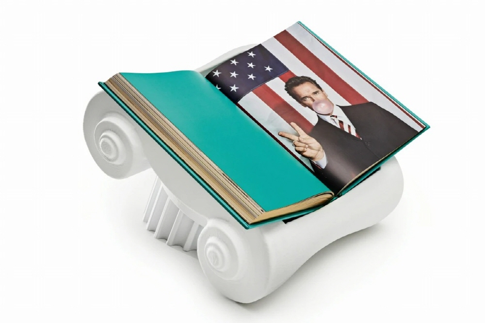 The Capitello edition comes with a unique book stand – a 1:2 scale reproduction of the iconic Capitello chair, famously created by Studio65 in 1971. Its pop subversion of the classic Greek ionic capital and column is a fitting homage to the Greek ideal embodied by Arnold¡¯s famous physique.