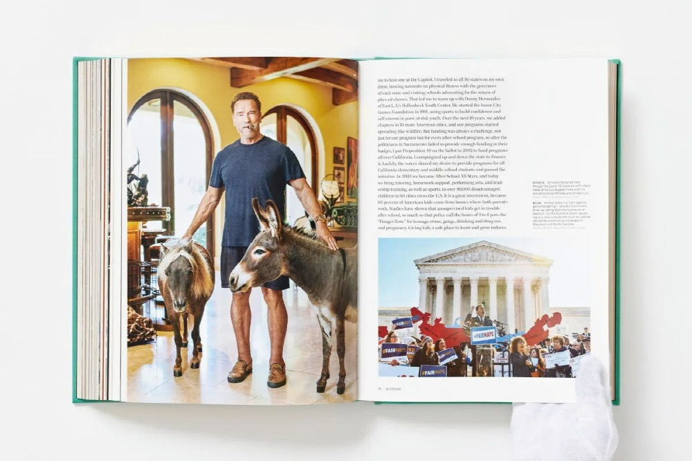 Also available as an Art Edition (No. 1–100), numbered and signed by Arnold Schwarzenegger, with a framed ChromaLuxe print, numbered and signed by Annie Leibovitz, and a Capitello book stand designed by Studio65.