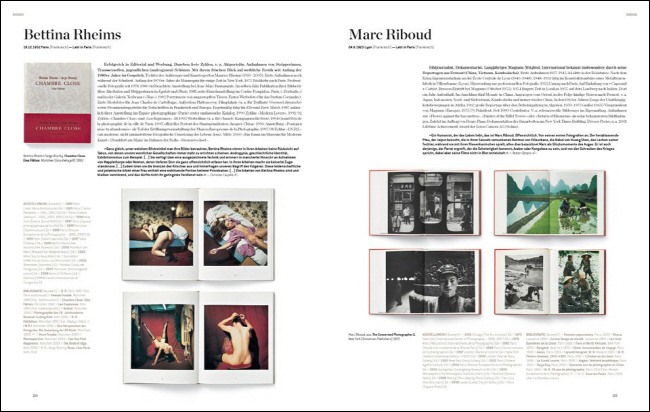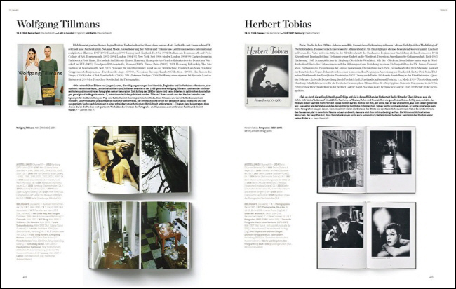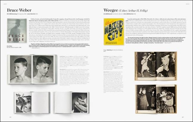 Ansel Adams, Manuel Álvarez-Bravo, Nobuyoshi Araki, Diane Arbus, Richard Avedon, David Bailey, Elmer Batters, Peter Beard, Cecil Beaton, Werner Bischof, Guy Bourdin, Bill Brandt, Robert Capa, William Claxton, Anton Corbijn, Robert Doisneau, William Eggleston, Masahisa Fukase, Nan Goldin, Jean-Paul Goude, John Heartfield, Eikoh Hosoe, George Hoyningen-Huene, Seydou Keïta, William Klein, Nick Knight, Neil Leifer, Peter Lindbergh, Man Ray, Robert Mapplethorpe, Inez van Lamsweerde & Vinoodh Matadin, Jean-Baptiste Mondino, Helmut Newton, Martin Parr, Irving Penn, Pierre et Gilles, Bettina Rheims, Leni Riefenstahl, Sebastião Salgado, Steve Schapiro, Andres Serrano, Cindy Sherman, Kishin Shinoyama, Jeanloup Sieff, Lord Snowdon, Bert Stern, Larry Sultan, Mario Testino, Wolfgang Tillmans, Ellen von Unwerth, Andy Warhol, Bruce Weber, Weegee, Gary Winogrand and many more.