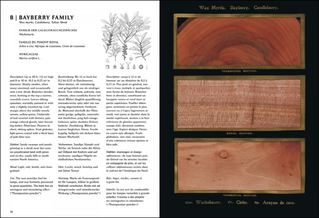 Taschen¿¡¼ ¹ß°£ÇÏ´Â ¿ìµå ºÏ(Wood Book)Àº ¿øº»¿¡ ³²¾Æ ÀÖ´Â °ßº»À» ¸ðµÎ ¼¶¼¼ÇÏ°Ô º¹Á¦ÇÏ¿© Á¦ÀÛÇÑ °ÍÀ¸·Î쎠, º¹Á¦¸¦ À§ÇØ ³ª¹« ÄÆ¿¡ ¹ÌÄ¡´Â ¼Õ»óÀÌ ÃÖ¼ÒȵǾî ÀÖ´Â ÈǸ¢ÇÑ »óÅ·Π³²¾Æ ÀÖ´Â Áö±ØÈ÷ Èñ±ÍÇÑ ¿øº»À» »ç¿ëÇÏ¿´´Ù. ÇöÀç ¾ËÆÄºª ¼ø¼¿¡ µû¶ó ¹è¿µÇ¾î ÀÖ´Â ¸ðµç ³ª¹«´Â ¹æ»çÇü°ú ¼öÆò, ¼öÁ÷ÀÇ 3°³ Ⱦ´Ü Àý´Ü¸éÀ» º¸¿©ÁÖ°Ô µÇ¾î ÀÖÀ¸¸ç, ÀÌ´Â ¼ö¸¹Àº ³ª¹«µéÀÇ Ç³ºÎÇÑ »ö°ú Áú°¨, ¾¾¾ÑÀÇ Æ¯Â¡ µîÀ» º¸¿©ÁÙ ¼ö ÀÖµµ·Ï µÇ¾î ÀÖ´Ù. ¶ÇÇÑ º» Ưº°ÆÇ¿¡´Â ´ëºÎºÐÀÇ ³ª¹µÀÙ°ú °ú½ÇÀ» Âû½º ½ºÇÁ¶ó±× »ç¸£°ÕÆ®(Charles Sprague Sargent)°¡ Á¦ÀÛÇÑ ¼®ÆÇÈ¿Í ³ª¹«ÀÇ ¿ø»êÁö¿Í ¹°¸®Àû Ư¡ µî¿¡ °üÇÑ ¼³¸íÀÌ Æ÷ÇԵǾî ÀÖ´Ù.