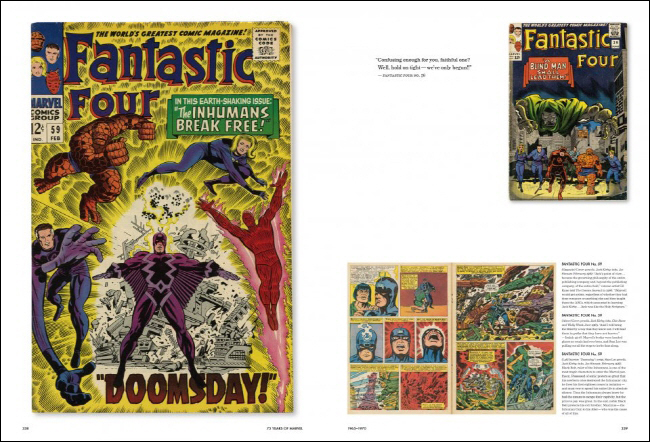 ¸¶ºíÀÇ 75ÁÖ³âÀ» ±â³äÇϸç, TASCHENÀº ¿À´Ã³¯ °¡Àå ¿µÇâ·Â ÀÖ´Â ¸¸È ÃâÆÇ»çÀÇ °ÉÀÛÀ» ¼Ò°³ÇÑ´Ù. ±¸¼ºÀº ´Ü¼øÈ÷ À¯¸íÇÑ Ä³¸¯Å͸¦ »Ó¸¸ÀÌ ¾Æ´Ï¶ó ÁÖÀΰøµéó·³ ÀÚ½ÅÀÇ »îÀÌ À¯¸íÇÏ°Ô µÈ ¡°±¸¿ø Åõ¼ö¡±¿Íµµ °°Àº Á¦ÀÛÀÚ Stan "the Man" Lee, Jack "King" Kirby¿Í ½ºÆ¼ºê µ÷ÄÚ(Steve Ditko), Á¸ ·Î¹ÌŸ(John Romita), Á¸ ºÎ¼¼¸¶(John Buscema), ¸¶¸® ¼¼º£¸°(Marie Severin) ±×¸®°í ±× ¿Ü¿¡µµ ¼¿ ¼ö ¾ø´Â ´Ù¸¥ À§´ëÇÑ ¸â¹öµéÀ» ÇÔ²² ±â³äÇϰíÀÚ ÇÑ´Ù.