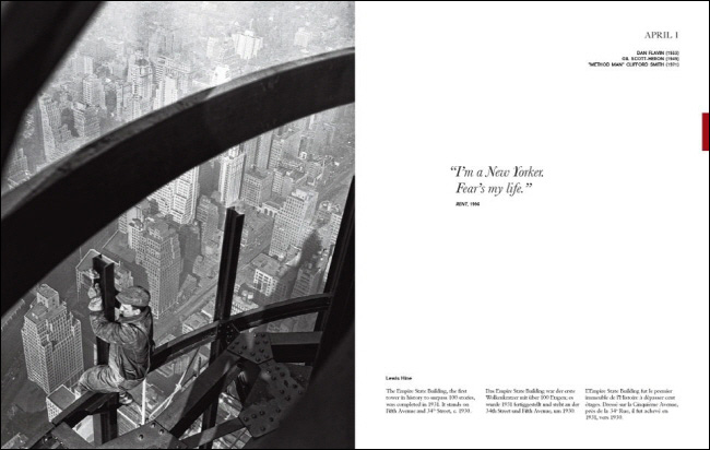 Have your inspiration soar sky-high with TASCHEN's 365 Day-By-Day New York, your new permanent calendar. Each day you¡¯ll discover a beautiful city portait and a related quote, bringing the essence of New York¡¯s spirit and charm to your desktop. On special days you¡¯ll also learn the birthdays of some of history¡¯s most famous New Yorkers. At the end of the year, simply turn back to the beginning and let the magic continue!