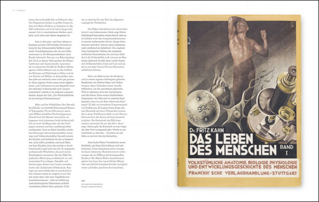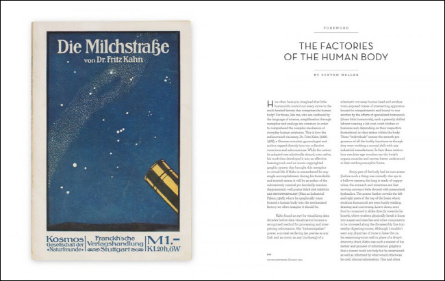 ÇÁ¸®Ã÷ Ä(Fritz Kahn)Àº µ¶ÀÏÀÎÀ¸·Î, ÀÇ»ç, ±³À°ÀÚ, À¯¸í °úÇÐÀú¼ú°¡, ±×¸®°í Á¤º¸±×·¡ÇÈ ºÐ¾ßÀÇ ¼±±¸ÀÚÀÌ´Ù. ±×·¯³ª ±×ÀÇ ºû³ª´Â ÀÛǰµéÀº ´ëÁß¿¡°Ô Á¡Á¡ ÀØÇôÁ®°¬´Ù. ³ªÄ¡´Â ±×ÀÇ Ã¥À» º¸´Â °ÍÀ» ±ÝÁöÇß°í ÀÌ¹Ì Ãâ°£µÈ Ã¥µéÀº ºÒ»ì¶ó¹ö·È±â ¶§¹®ÀÌ´Ù. µ¶ÀÏÀº ±×¸¦ Ãß¹æÇϱ⿡ À̸£·¶´Ù. ±×·¯³ª ÇÁ¸®Ã÷ ÄÀº ÆÈ·¹½ºÅ¸Àο¡¼ ÇÁ¶û½º·Î, ±×¸®°í ¹Ì±¹À¸·Î °Ç³Ê°¡ ÀÛ¾÷À» °è¼Ó À̾´Ù. ±×ÀÇ ¾÷ÀûÀº ¼¿ ¼ö ¾øÀÌ ¸¹Áö¸¸, °¡Àå ÁÖ¸ñÇÒ ¸¸ÇÑ Á¡Àº º¹ÀâÇÑ °úÇÐÀû ¾ÆÀ̵ð¾î¸¦ ¼³¸íÇϱâ À§ÇÑ Ã¢ÀÇÀû ½Ã°¢ÈÀÇ ¹ßÀüÀ» ÀÌ·ç¾ú´Ù´Â °ÍÀÌ´Ù. ÄÀÇ Åº»ý 125ÁÖ³âÀ» ±â³äÇÏ¿© ¹ßÇàµÈ ÀÌ Ã¥Àº ±×ÀÇ ÀÛǰÀ» ´Ù½Ã ÇÑ ¹ø Á¶¸íÇÏ´Â µ¥ ÀÇÀǰ¡ ÀÖ´Ù. ÀÌ ¸ð³ë±×·¡ÇÁ¿¡´Â ±¤¹üÀ§ÇÑ Á¤º¸¸¦ ´ãÀº ÀÚ¸·°ú ÇÔ²² 350°³ ÀÌ»óÀÇ »ðȵé, ÇÁ¸®Ã÷ ÄÀÌ ÀÛ¼ºÇÑ ¼¼ °¡ÁöÀÇ ¿øº» ±Û, ½ºÆ¼ºì Çï·¯(Steven Heller)°¡ ¾´ ¼¹®, ±×¸®°í ÄÀÇ »î°ú ±×°¡ ÀÏ»ý¿¡ °ÅÃÄ ¸¸µç ÀÛǰµé¿¡ °üÇÑ ¿¡¼¼À̰¡ ½Ç·Á ÀÖ´Ù. ÀÚ¿¬ °úÇÐ ¾ÖÈ£°¡µé, ±×·¡ÇÈ Àü¹®°¡µé, ±×¸®°í »ý°¢À» ½Ã°¢ÀûÀ¸·Î Ç¥ÇöÇÏ´Â µ¥ °ü½É ÀÖ´Â ¸ðµç À̵éÀÌ ÄÀÌ ³²±ä À§´ëÇÑ ¾÷Àû¿¡ ¸Å·áµÉ °ÍÀÌ´Ù.