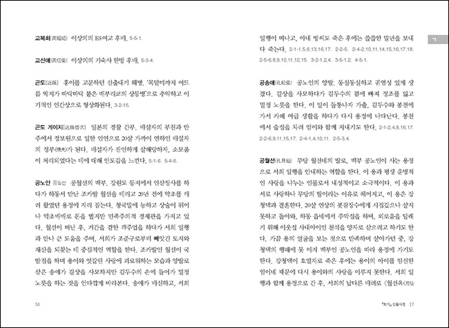 ÀÌ »çÀü¿¡ ¼ö·ÏµÈ Àι°Àº ÀÛǰ¿¡ Á÷Á¢ µîÀåÇÏ´Â Àι°Àº ¹°·Ð, Àü¾ðÀ̳ª ±â¾ïÀ» ÅëÇØ À̸§ÀÌ ÇÑ Â÷·Ê ÀÌ»ó °Å¸íµÇ´Â ¸ðµç Àι°À» ¸Á¶óÇÑ °ÍÀÌ´Ù.