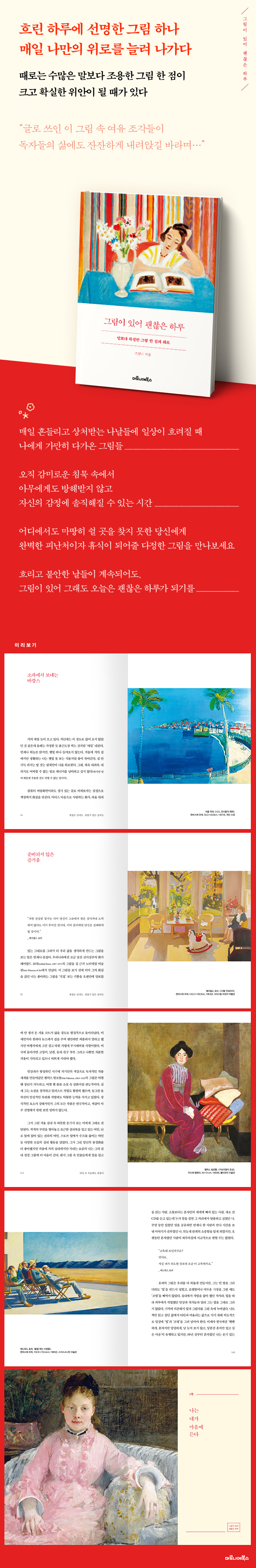 ¸¶À½ÀÌ ½Ã²ô·¯¿ï ¶§´Â ¸¶Å© ·Î½ºÄÚÀÇ Ä¿´Ù¶õ ±×¸²À» ¹Ù¶óº»´Ù. ¶§·Î´Â °·ÄÇÏ°í ¶§·Î´Â ¿ÂÈÇÑ »ö ¹èÄ¡¿¡¼ Áö±Ý ³» °¨Á¤ÀÇ ±âº¹À» Àо°í ³ª¸¸ÀÇ Æí¾ÈÇÑ ´À³¦À» ã´Â´Ù. ºÒ¾È°ú ½½·³ÇÁ°¡ ã¾Æ¿Ã ¶§¸é Ä«¹ÌÀ¯ ÄÚ·Î¿Í Á¶¸£ÁÖ ¼è¶óÀÇ ±×¸²À» º»´Ù. ¿Ïº®ÇÑ ÀÛǰÀ» À§ÇØ ¸¸Á·ÇÒ ¶§±îÁö ¼ö¸¹Àº ½ºÄÉÄ¡¸¦ ±×·È´ø ±×µé¿¡°Ô¼ ²ÙÁØÇÔ°ú ²öÁú±èÀÌ ¾ó¸¶³ª °í±ÍÇÑ ÀÏÀÎÁö ±ú´Ý´Â´Ù. Æú °í°»°ú ÇÇ¿¡¸£ º¸³ª¸£°¡ ÀÚÁÖ ±×·È´ø °í¾çÀÌ ±×¸²°ú µ¥À̺ñµå ȣũ´Ï°¡ ±×ÀÇ Ãæ½ÇÇÑ ¹Ý·Á°ßµéÀ» ±×¸° ÈÁýÀ» º¸¸é¼, ÀúÀÚ ¿ª½Ã ÀÚ½ÅÀÇ °í¾çÀÌ¿¡°Ô¼ âÀÛÀÇ ¿µ°¨À» ¹Þ´Â´Ù. º£¸£Æ® ¸ð¸®Á¶°¡ ±×¸° ¼öÁÝÀº ¼Ò³àÀÇ ±×¸²¿¡¼ Àؾú´ø ù»ç¶ûÀÇ Ç²Ç²ÇÔ°ú ¼³·¹´Â °¨Á¤µéÀ» ´Ù½Ã ºÒ·¯¿À±âµµ Çϰí, Àΰ£°ü°è¿¡¼ »óó ¹Þ¾ÒÀ» ¶§´Â ¿¡µå¿öµå È£ÆÛÀÇ °íµ¶ÇÑ ±×¸²À» º¸¸ç ¿Â±â ÀÖ´Â ´ëȸ¦ ²Þ²Û´Ù. ¹®µæ ã¾Æ¿Â ¿ì¿ïÀÌ ±í¾îÁú ¶§´Â Àª¸®¾ö ÅͳÊÀÇ ½Åºñ·Î¿î dz°æÈ, ¿¡µå¹Ù¸£ ¹¶Å©ÀÇ Àý±ÔÇÏ´Â ±×¸²µé, Æç¸¯½º ¹ß·ÎÅëÀÇ µûµíÇÑ ½Ç³» ±×¸²µéÀ» ²¨³»º»´Ù. ÀÚÁ¸°¨ÀÌ ¶³¾îÁ® ±«·Î¿ï ¶§´Â ¿¡°ï ½Ç·¹ÀÇ °·ÄÇÑ ÀÚȻ󿡼 ±× ¾î¶² ¸»¿¡µµ Èçµé¸®Áö ¾Ê´Â ÀÚÀǽÄÀ» ´ÙÁö°í, ÇÒÀÏÀÌ ¸¹¾Æ °ú¹ÎÇϰí ÃÊÁ¶ÇÑ ¸¶À½ÀÌ µé ¶§´Â Á¤»ç°¢Çü¿¡ ¼öÆò¼±°ú ¼öÁ÷¼±¸¸À¸·Î ÀÌ·ç¾îÁø ¸óµå¸®¾ÈÀÇ ±×¸²¿¡¼ Àá½Ã ½¬¾î°£´Ù.