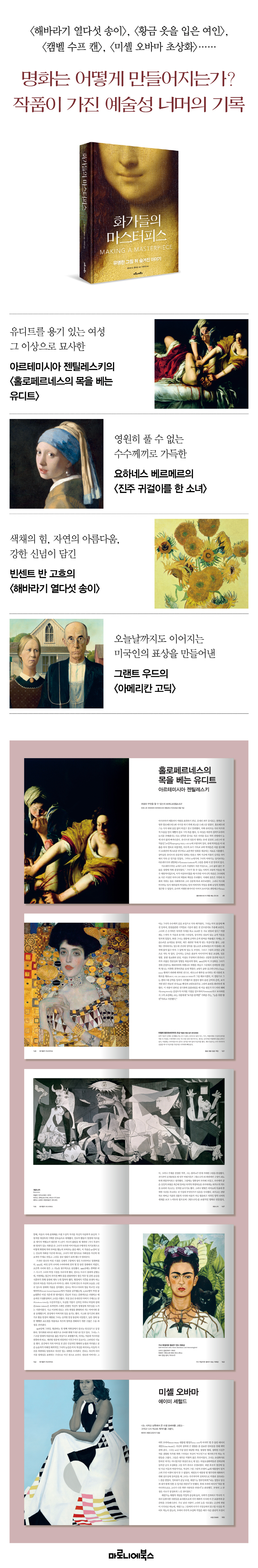 ·¹¿À³ª¸£µµ ´ÙºóÄ¡ÀÇ <¸ð³ª¸®ÀÚ>, ¿äÇϳ׽º º£¸£¸Þ¸£ÀÇ <ÁøÁÖ ±Í°ÉÀ̸¦ ÇÑ ¼Ò³à>, ºó¼¾Æ® ¹Ý °íÈåÀÇ <ÇØ¹Ù¶ó±â ¿´Ù¼¸ ¼ÛÀÌ>, ±¸½ºÅ¸ÇÁ Ŭ¸²Æ®ÀÇ <Ȳ±Ý ¿ÊÀ» ÀÔÀº ¿©ÀÎ>¡¦¡¦. ÀÌ ÀÛǰµéÀÇ °øÅëÁ¡Àº »ç¶÷µéÀÌ ÈçÈ÷ ¡®¸íÈ¡¯¶ó°í ºÎ¸£´Â ±×¸²À̶ó´Â °ÍÀÌ´Ù. ±×·¸´Ù¸é ¼ö¸¹Àº ¿¹¼úǰ Áß¿¡¼µµ ÀÌ ÀÛǰµéÀº ¾î¶»°Ô ¡®¸íÈ¡¯¶ó ºÒ¸®°Ô µÇ¾úÀ»±î? ÀÌ Áú¹®¿¡ ´äÇÒ ¼ö ÀÖ´Â »ç¶÷Àº ±×¸® ¸¹Áö ¾Ê´Ù. ÀÛǰÀÌ ³ôÀº Æò°¡¸¦ ¹Þ°Ô µÈ °úÁ¤À̳ª ¹ÌÀǽÄ, »óȲ¿¡´Â Àǹ®À» Á¦±âÇÏÁö ¾ÊÀº ä ¡®¸íÈ¡¯¶ó°í ºÒ¸°´Ù´Â »ç½Ç¸¸ ÀüÇØÁö´Â °æ¿ì°¡ ¸¹±â ¶§¹®ÀÌ´Ù. ¡ºÈ°¡µéÀÇ ¸¶½ºÅÍÇǽº¡»´Â ±×¸²ÀÌ °¡Áø À§´ëÇÔ¿¡ °¨ÅºÇÏ´Â ÀÏ¿¡¼ ±×Ä¡Áö ¾Ê°í, ¿Ö À§´ëÇÏ´Ù°í ¿©°ÜÁö´ÂÁö Áú¹®À» ´øÁø´Ù. ¸ðµç ÀÛǰ µÚ¿¡´Â ¡®À̾߱⡯°¡ ÀÖ´Ù. ±×¸®°í ±× À̾߱âµéÀº ¿¹¼úǰÀÌ °¡Áø ¿¹¼ú¼º ³Ê¸Ó¿¡ ´Ù¸¥ ¿ä¼ÒµéÀÌ Á¸ÀçÇÔÀ» ¾Ë·ÁÁØ´Ù. ´«À¸·Î º¸ÀÌ´Â °Í ÀÌ»óÀ» »ìÆìº¸´Â ÀÌ Ã¥Àº Áö±Ý±îÁö º¸Áö ¸øÇÑ »õ·Î¿î ¸íÈÀÇ ¼¼°è·Î ¿ì¸®¸¦ ¾È³»ÇÑ´Ù.