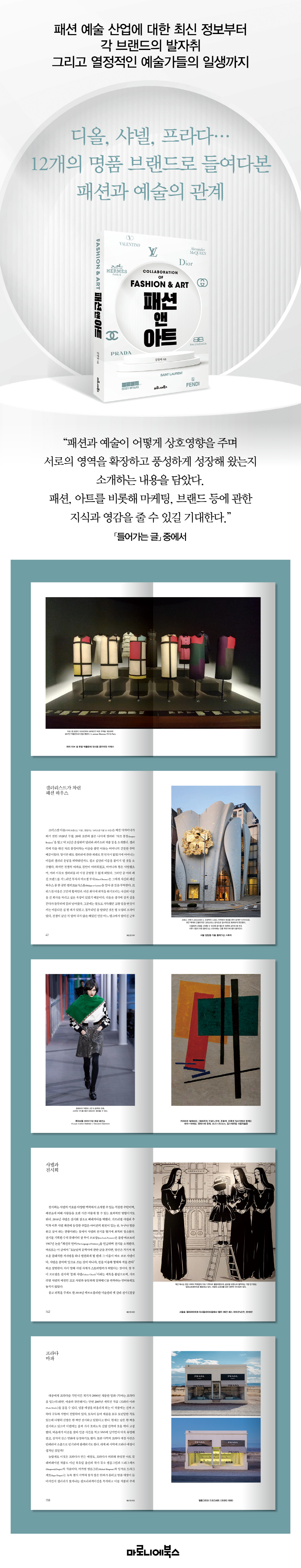 °á±¹ ÆÐ¼Ç°ú ¿¹¼ú¿¡ ÃµÂøÇÏ¸ç ºÎÁö·±È÷ ±×¸®°í ¿ìÁ÷ÇÏ°Ô °É¾î¿Â ÀúÀÚÀÇ ¹ß°ÉÀ½ÀÌ ¸ð¿©, µÎ ¿µ¿ªÀ» °³º° ´ÜÀ§»Ó¸¸ ¾Æ´Ï¶ó »óÈ£ ¿µÇâÀÇ °üÁ¡¿¡¼ ÀÌÇØÇÒ ¼ö ÀÖ°Ô²û ÇÏ´Â ÀÌ Ã¥Àº ÆÐ¼Ç°ú ¿¹¼ú ¶Ç´Â ¿¹¼ú°ú ÆÐ¼ÇÀ» Æò¸éÀûÀ¸·Î ÀÌÇØÇÏÁö ¾Ê°í ¿¬°áÇØ »çÀ¯ÇÒ ¼ö ÀÖ´Â ÀåÀ» Á¦°øÇÑ´Ù. ºê·£µå¿Í ¿¹¼ú°¡µéÀ» °í·ç ¼Ò°³Çϴ åÀ» Åë°úÇÏ¸é¼ ÆÐ¼Ç°ú ¿¹¼ú¿¡ ´ëÇÑ Àú¸¶´ÙÀÇ Áö½Ä°ú °¨¼ºÀ» ¾ò´Â À¯ÀǹÌÇÑ °á°ú¸¦ ÀÌ·ï³¾ ¼ö ÀÖµµ·Ï ÇÑ´Ù. ±Ç¸»¿¡ ¡°ÆÐ¼Ç, ¾ÆÆ®¸¦ ºñ·ÔÇØ ¸¶ÄÉÆÃ, ºê·£µå µî¿¡ °üÇÑ Áö½Ä°ú ¿µ°¨À» ÁÙ ¼ö ÀÖ±æ ±â´ëÇÑ´Ù.¡±¶ó°í ¹àÈù ÀúÀÚÀÇ ¹Ù¶÷ÀÌ À¯È¿ÇÑ ÀÌÀ¯´Ù.
